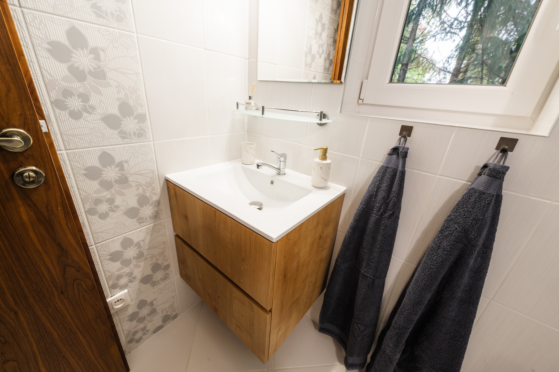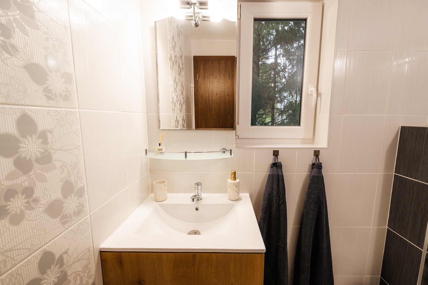 K dispozícii je fínska sauna a jacuzzi vírivá vaňa zapustená v zemi, ktoré sú rovnako súčasťou otvoreného priestoru štúdia. Wellness pripravujeme pre každého hosťa individuálne, preto prosíme pri odoslaní rezervácie do poznámky uviesť či budete mať o wellness počas Vášho pobytu záujem. Kúpeľňa je veľmi moderná a poskytuje priestranný sprchovací kút, dizajnové umývadlo i toaletu. Najmä ak cestujete s menším dieťaťom, oceníte oplotený pozemok s udržiavaným trávnikom. Parkovanie je zadarmo priamo pred apartmánom.