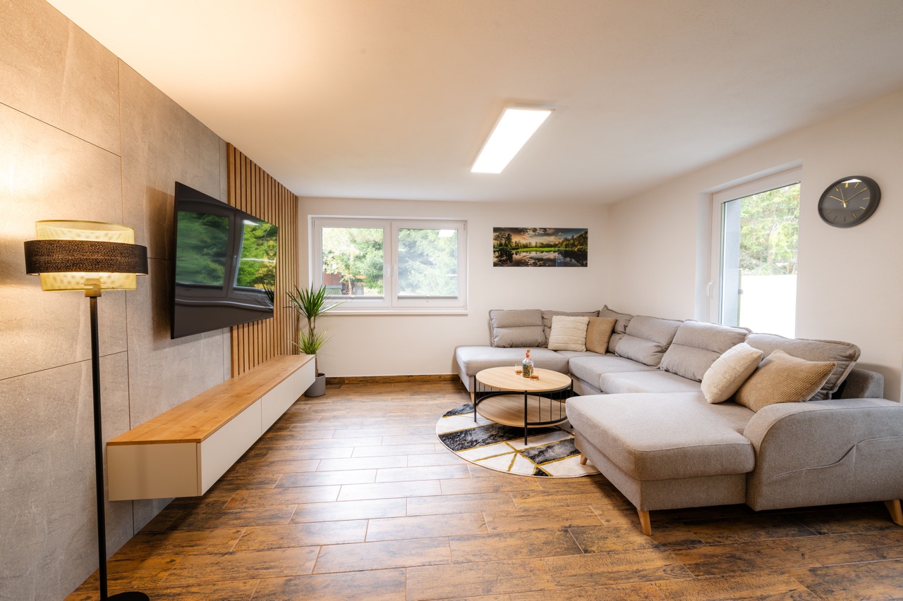 Apartmán Slanica č.3 je najväčší z našich apartmánov ktoré ponúkame. Je moderne a štýlovo zariadený. Disponuje s 1 spálňou, kde sa nachádza príručný stolík, zabudovaná šatníková skriňa, manželská posteľ a TV stena s TV. Apartmán disponuje s komplet zariadenou kuchynskou linkou so všetkým potrebným inventárom (taniere, rôzne poháre, šálky, hrnce, príbory atď.) a so stavanými spotrebičmi ako je umývačka riadu, vstavaná chladnička s mrazničkou a taktiež vstavaná mikrovlnná rúra. K dispozícii je aj Nespresso kávovar a ponuka čajového baru ktorá je pre našich hostí zadarmo. V obývacej izbe sa nachádza TV stena s veľkou UHD obrazovkou a rozkladací extra veľký rohový gauč, ktorí môže poslúžiť v prípade potreby aj ako prístelka. Teda apartmán ponúka celkovo 2 pevné lôžka v samostatnej spálni a možnosť 2 prístelok pre deti, alebo pre 2 dospelé osoby na rozkladacom gauči. Obývacia izba a kuchyňa majú úctyhodnú veľkosť 30m2. Apartmán má aj malú predsieň / chodbičku s vešiakovou stenou a vstavanou skriňou, kde si môžete pohodlne odložiť svoje bundy a topánky. K apartmánu prislúcha kúpeľňa so sprchovým kútom, WC a umývadlom. Celková výmera apartmánu so všetkými prislúchajúcimi miestnosťami je 51m2.